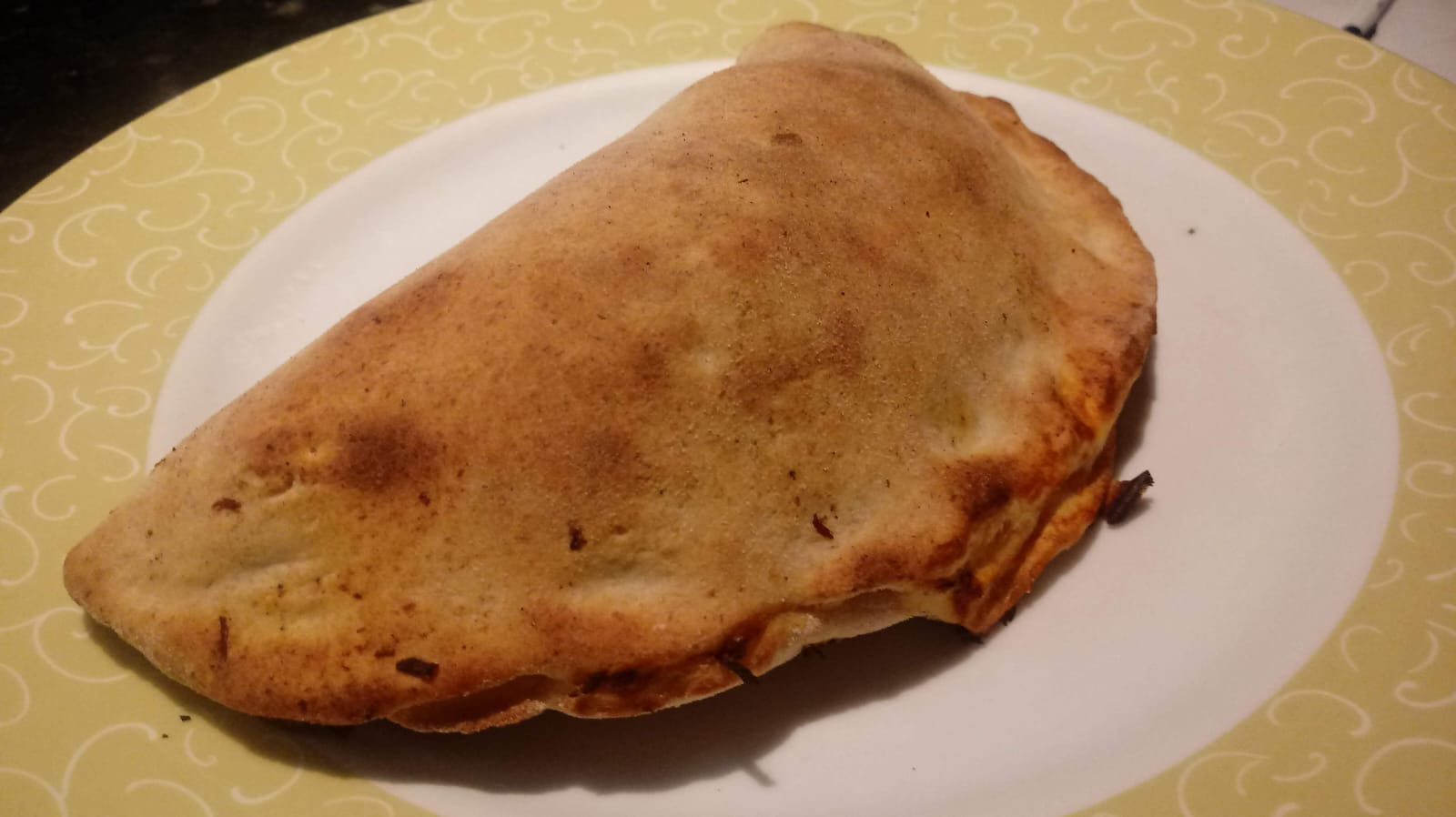 A deliciosa calabresa acompanhada de cebolas cortadinhas, azeitona, mussarela e molho especial.