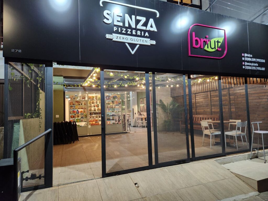 Em julho de 2023 unificamos as atividades da Pizza Jack e da Briut em um novo espaço no bairro Bom Fim, na rua Vasco da Gama, 279, e também trocamos o nome da pizzaria para Senza Pizzeria Zero Glúten, com o objetivo de nos tornar franqueadores.